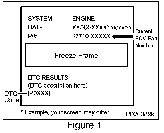 2. Attach this printout to the Repair Order. Figure 1 is an example of the Freeze Frame Data printout.