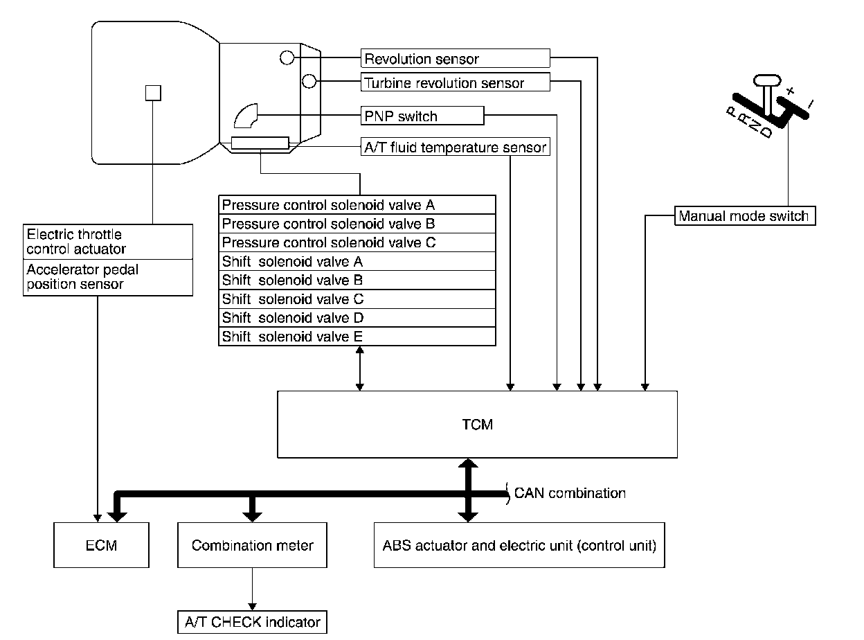 The automatic transaxle senses vehicle operating conditions through various sensors or signals. It always controls the optimum shift position and reduces shifting and lock-up shocks.