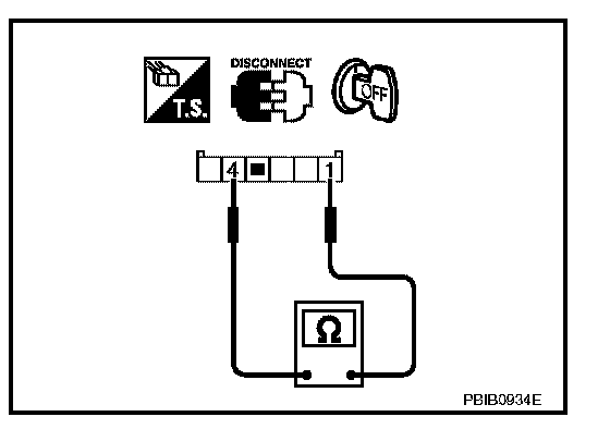 Check continuity between ASCD steering switch terminals 1 and 4 with pushing each switch.