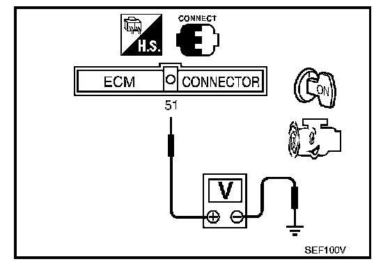 3. Check voltage between ECM terminal 51 (Mass air flow sensor signal) and ground.