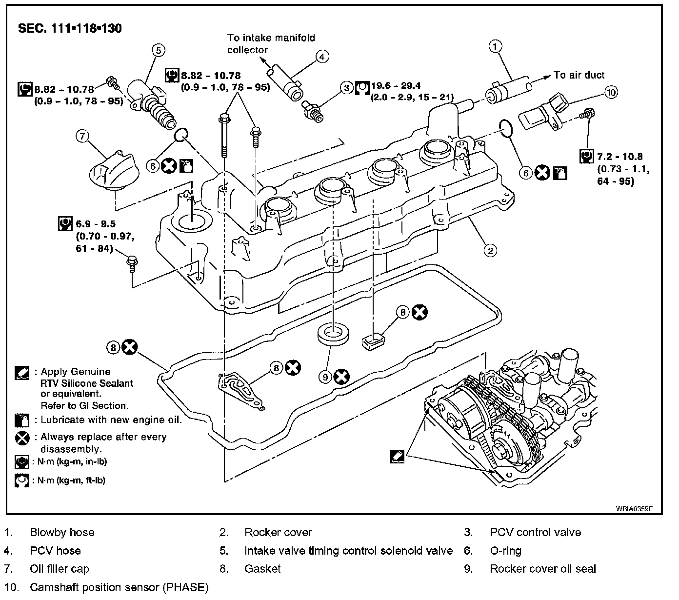 Crankshaft position sensor bolt: ........................7.2 - 10.8 Nm (0.73 - 1.10 kg-m, 63.4 - 95.5 inch lbs.)