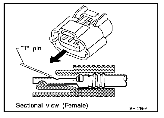 Carefully probe the contact surface of each terminal using a "T" pin. Do not bend terminal.