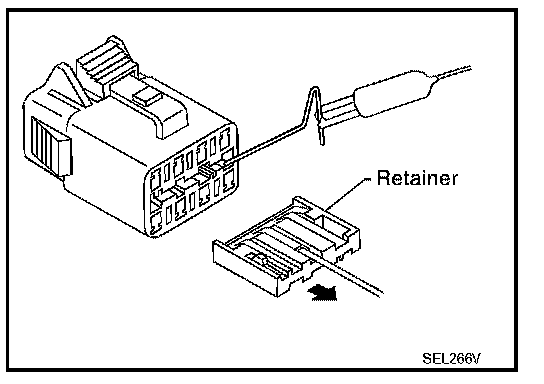 - Some connectors do not have a notch above each terminal. To probe each terminal, remove the connector retainer to make contact space for probing.