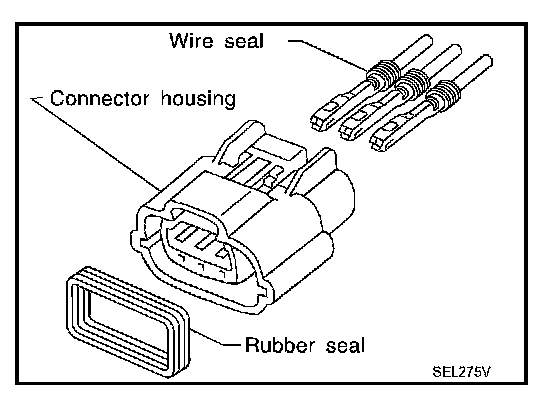 - The rubber seal may come off when connectors are disconnected. Whenever connectors are reconnected, make sure the rubber seal is properly installed on either side of male or female connector.