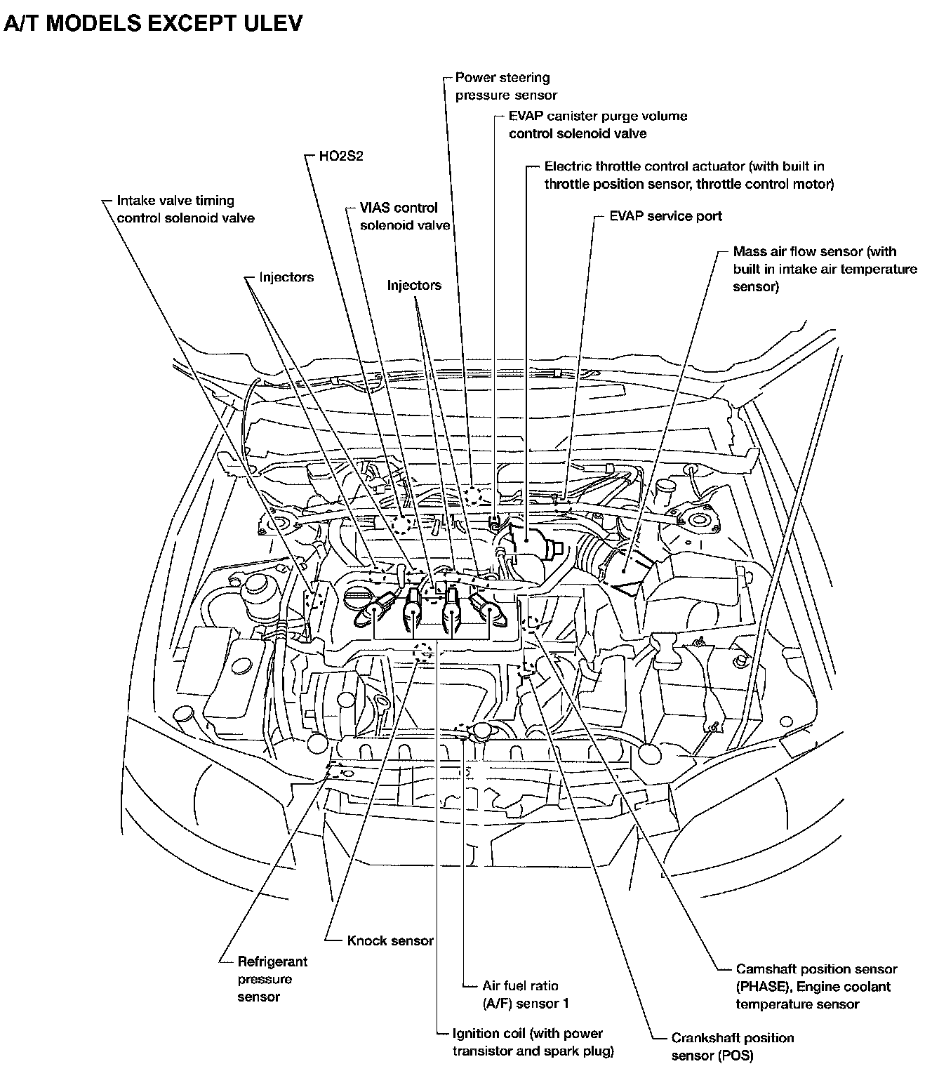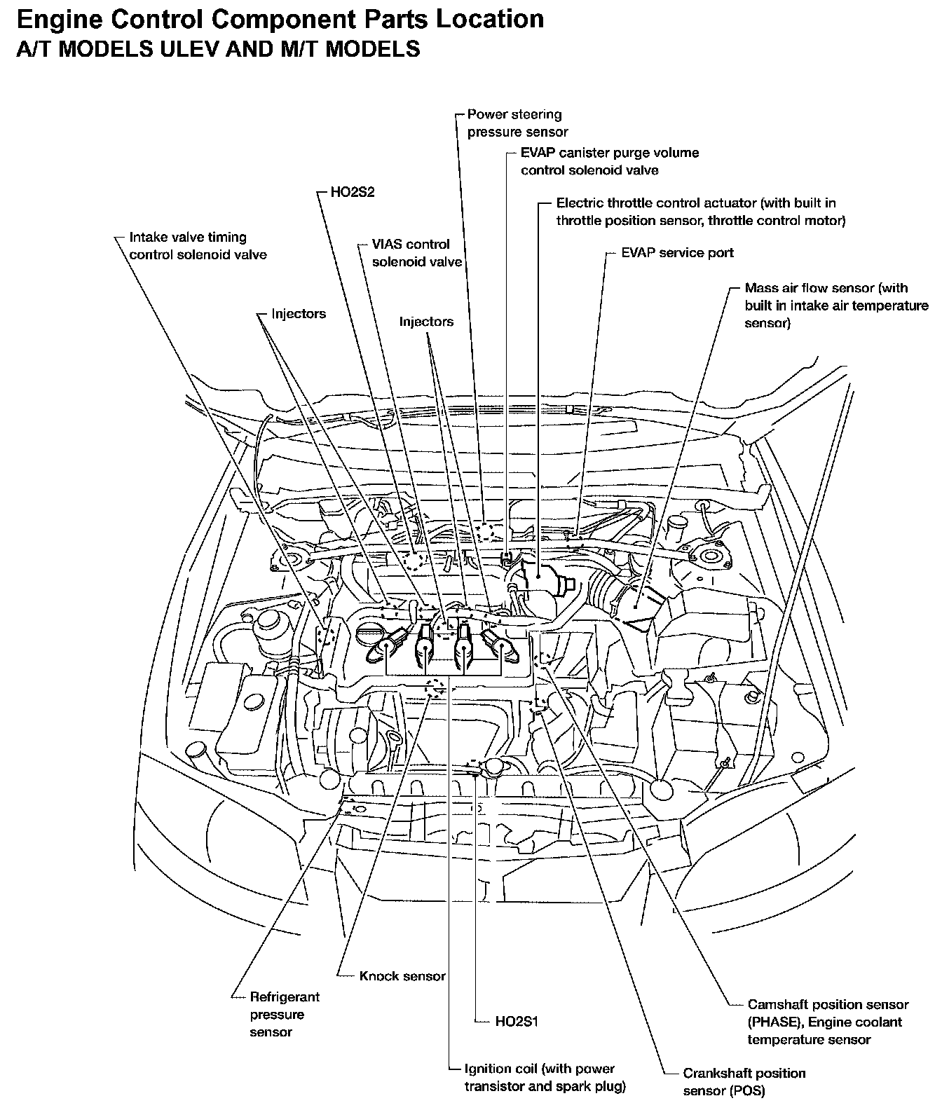 Engine Control Component Parts Location - A/T Models Ulev And M/T Models: