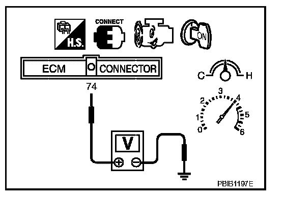 5. Set voltmeter probes between ECM terminal 74 (HO2S2 signal) and engine ground.