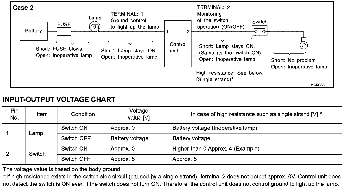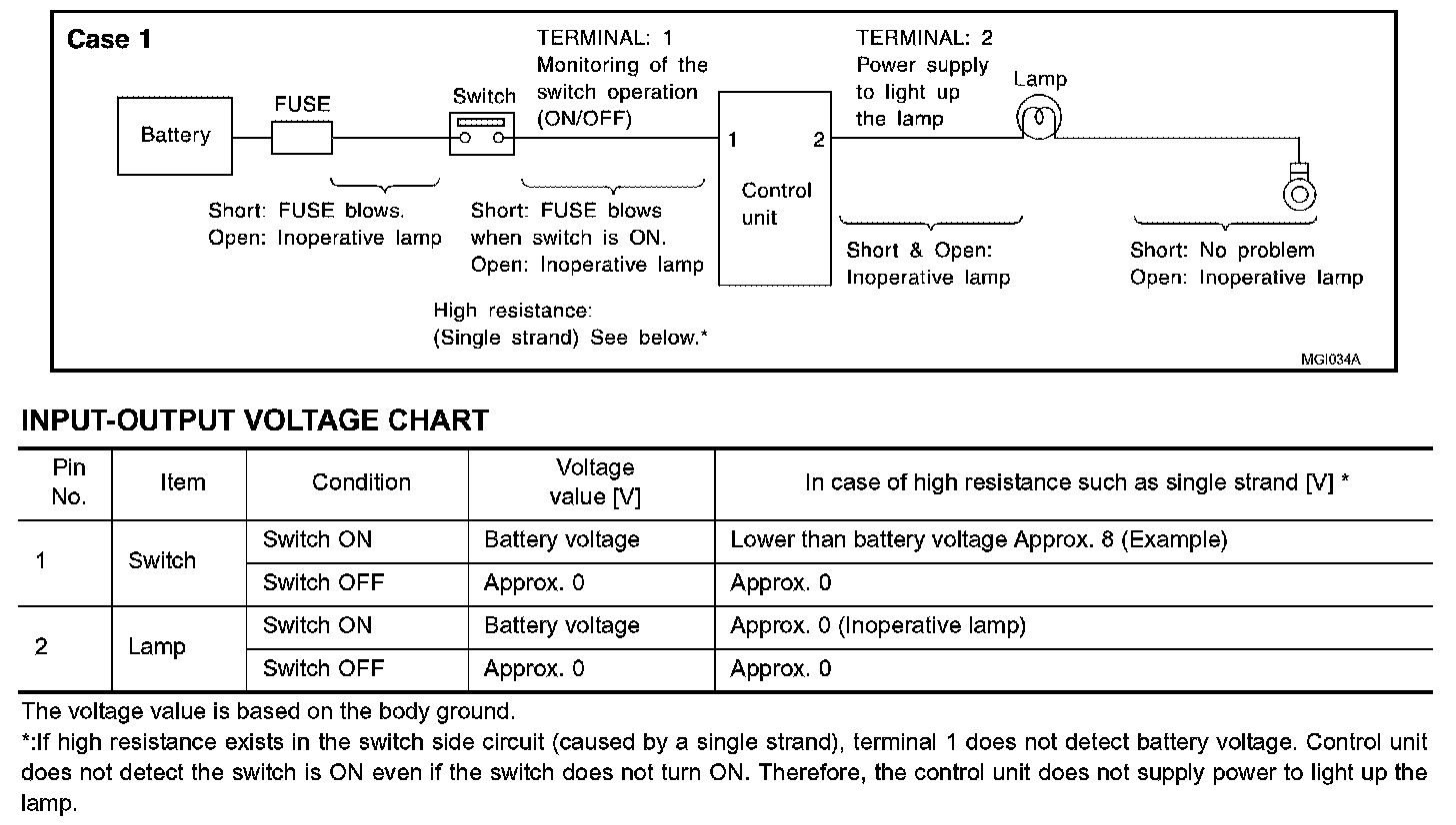 The continuity check is used to find an open in the circuit. The digital multimeter (DMM) set on the resistance function will indicate an open circuit as over limit (no beep tone or no ohms symbol). Make sure to always start with the DMM at the highest resistance level. To help in understanding the diagnosis of open circuits, please refer to the previous schematic.