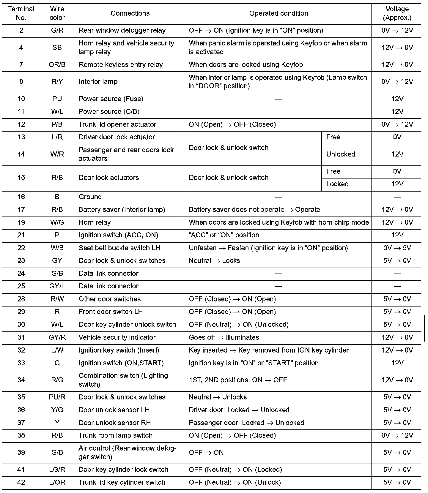 Pinout Values and Diagnostic Parameters