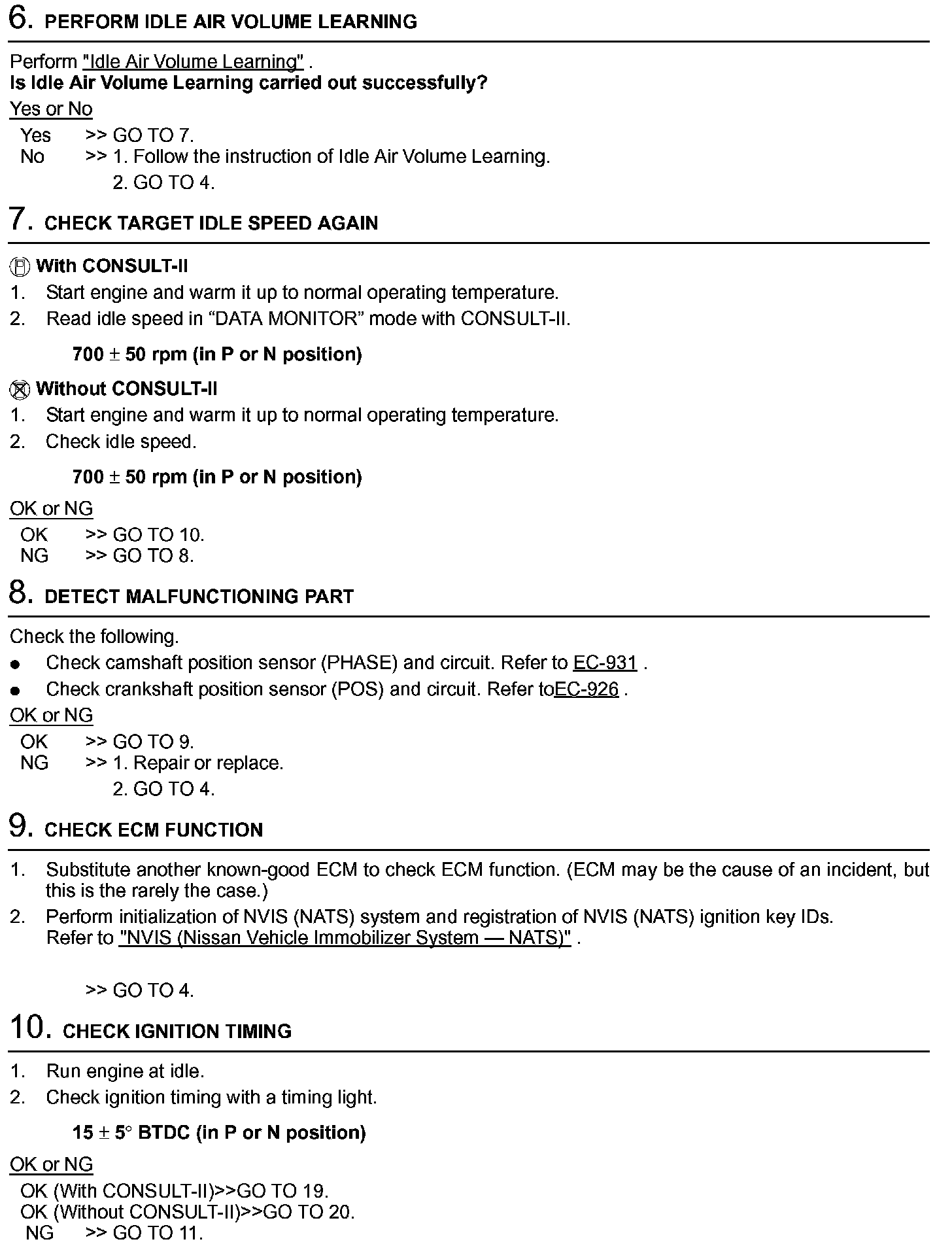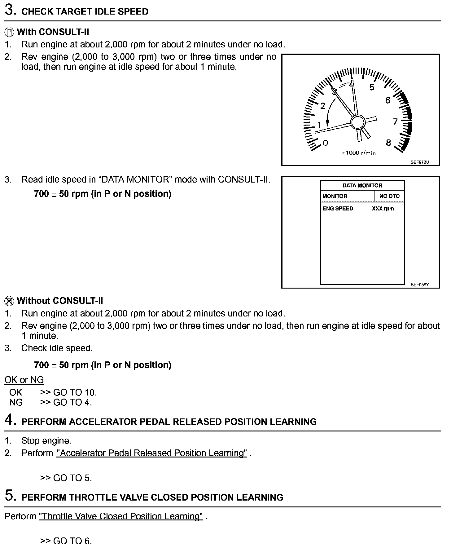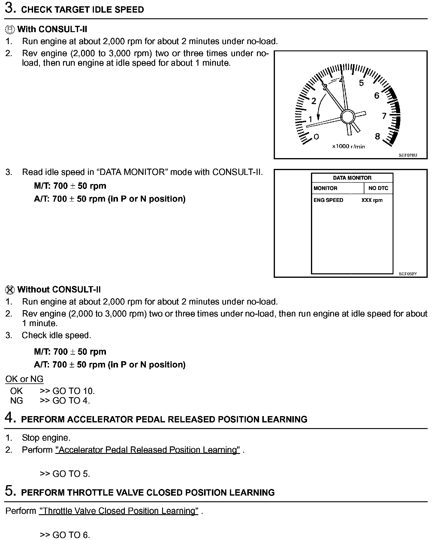3. On automatic transmission equipped models, when checking idle rpm, ignition timing and mixture ratio, checks should be carried out while shift lever is in N position.