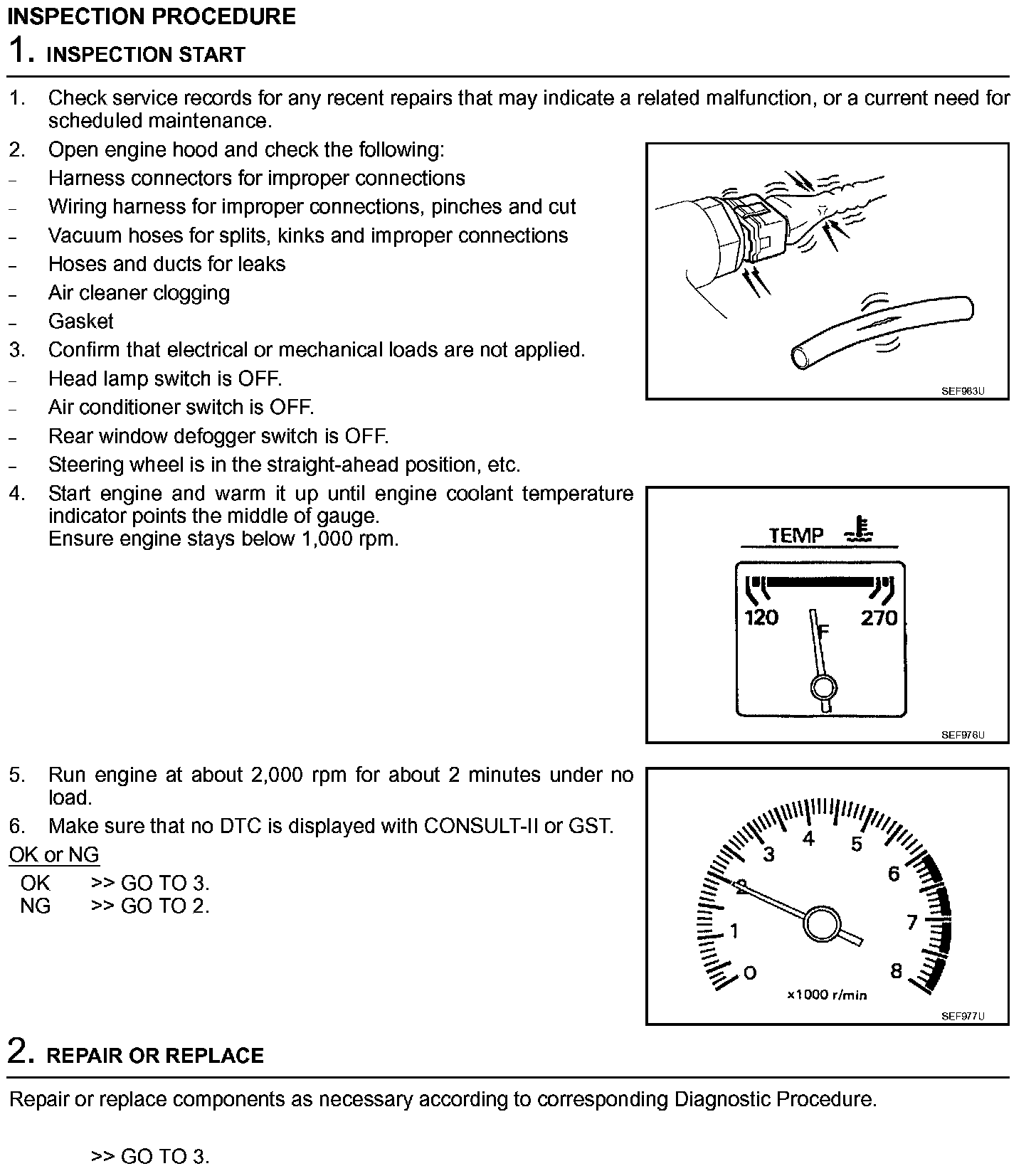 2. On air conditioner equipped models, checks should be carried out while the air conditioner is OFF.