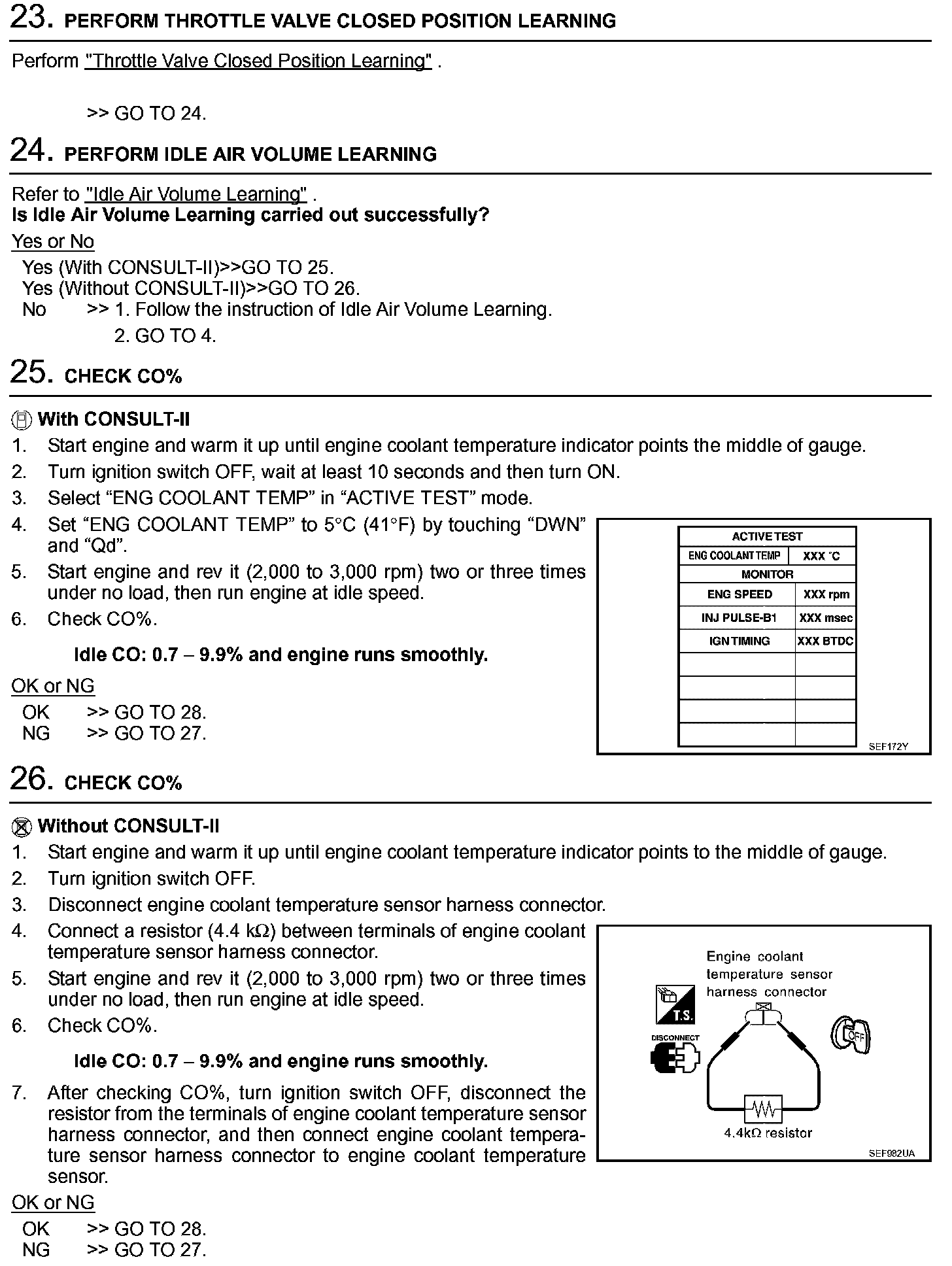 Idle Speed/Ignition Timing/Idle Mixture Ratio Adjustment (A/T MODELS EXCEPT ULEV)