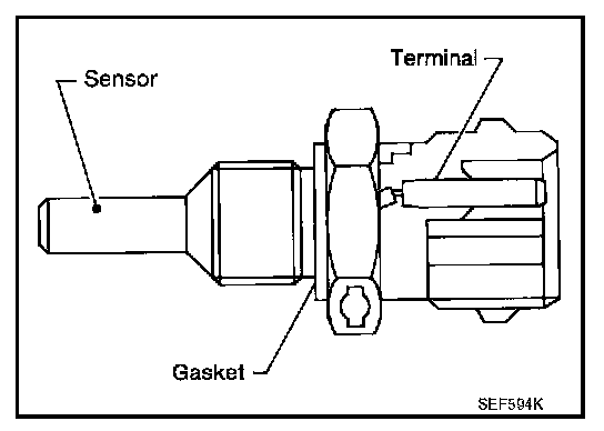 The engine coolant temperature sensor is used to detect the engine coolant temperature. The sensor modifies a voltage signal from the ECM. The modified signal returns to the ECM as the engine coolant temperature input. The sensor uses a thermistor which is sensitive to the change in temperature. The electrical resistance of the thermistor decreases as temperature increases.