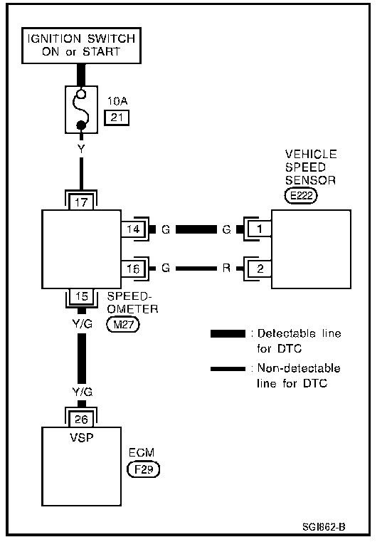 - A line with regular weight (wider line) represents a "detectable line for DTC (Diagnostic Trouble Code)". A "detectable line for DTC" is a circuit in which ECM can detect its malfunctions with the on board diagnostic system.