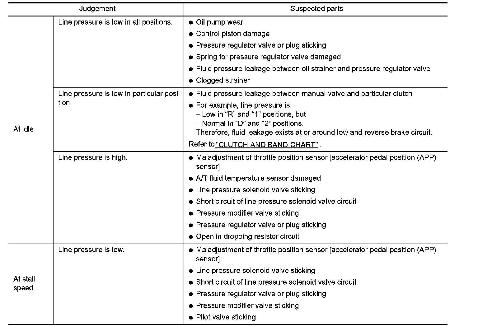 ^ When measuring line pressure at stall speed, follow the stall test procedure.