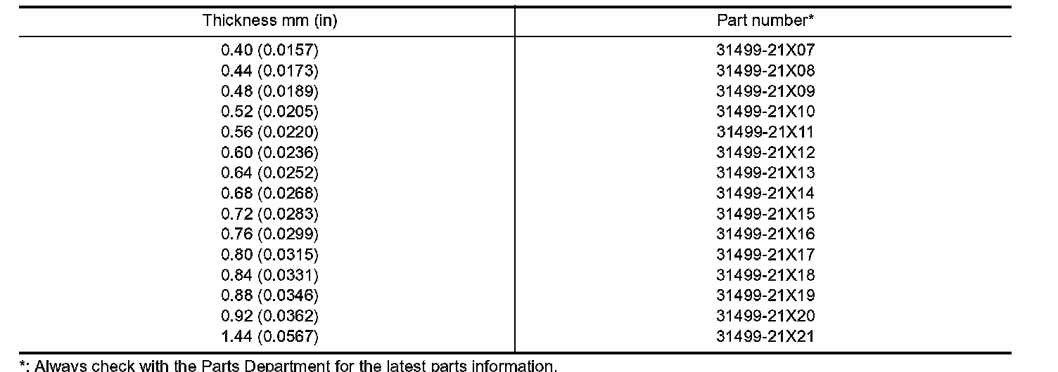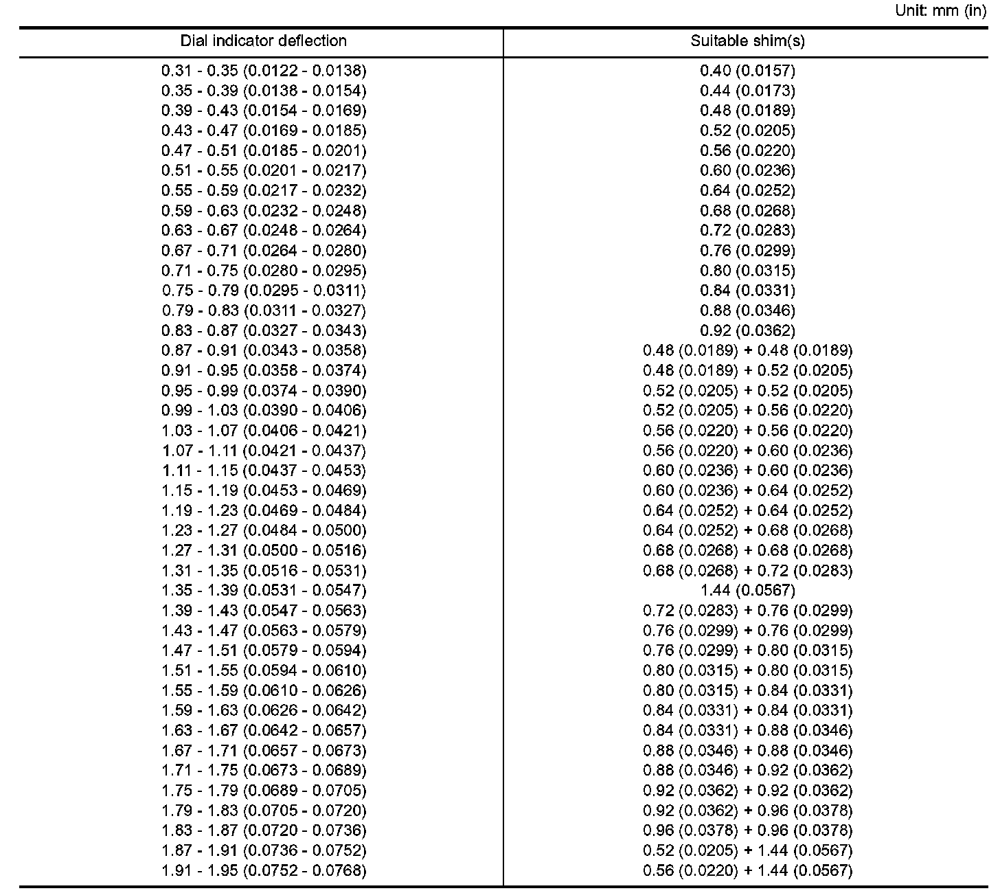 Table For Selecting Differential Side Bearing Adjusting Shim: