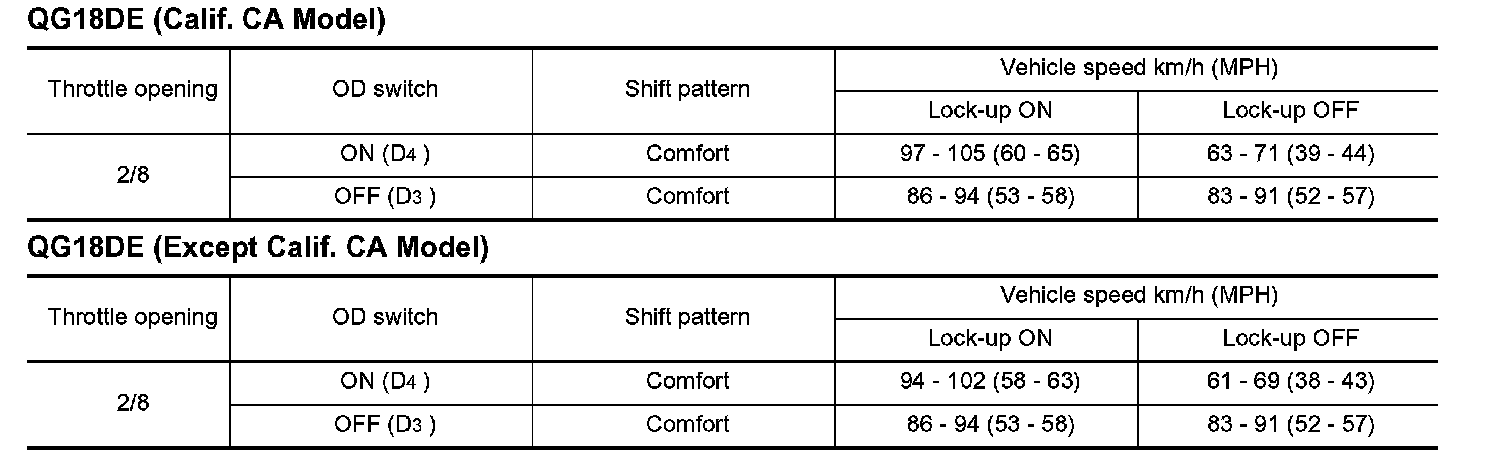 VEHICLE SPEED WHEN SHIFTING GEARS:
