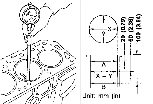 If it exceeds the limit, rebore all cylinders. Replace cylinder block if necessary.