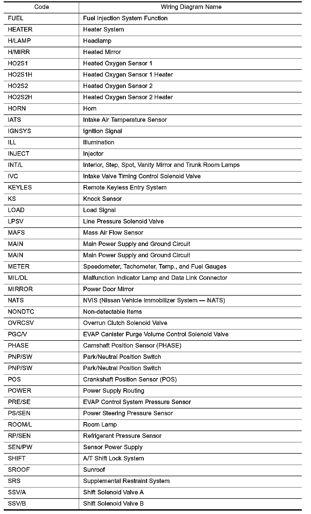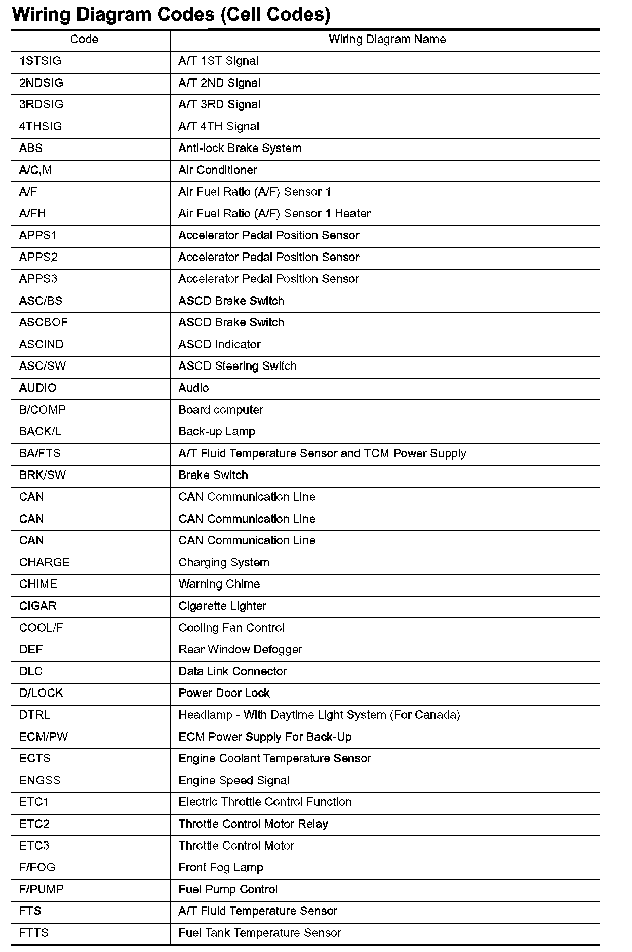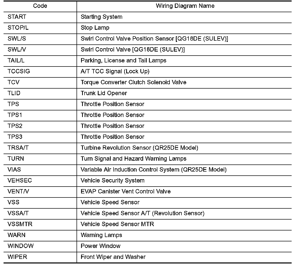 Wiring Diagram Codes/Abbreviations Part 1: