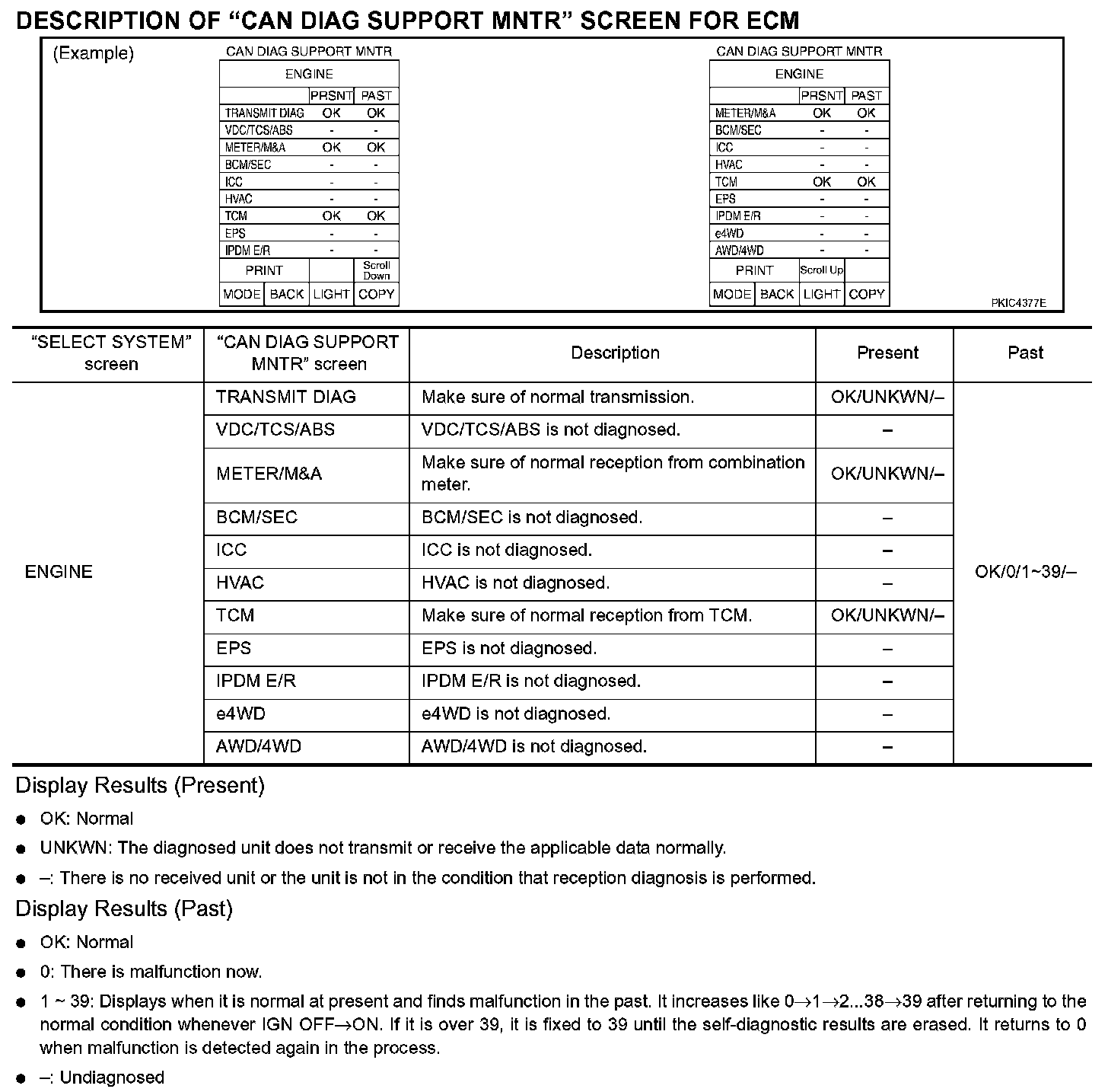 DESCRIPTION OF "CAN DIAG SUPPORT MNTR" SCREEN FOR ECM