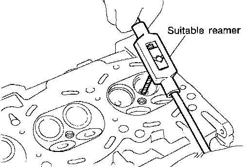 6. Using valve guide reamer, apply reamer finish to valve guide.