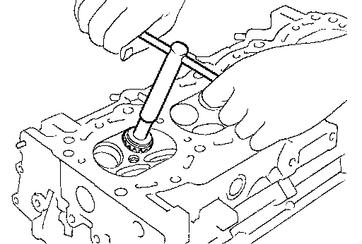 2. Drive out valve guide with a press [under a 20 kN (2.2 ton-force) pressure] or hammer and suitable tool.