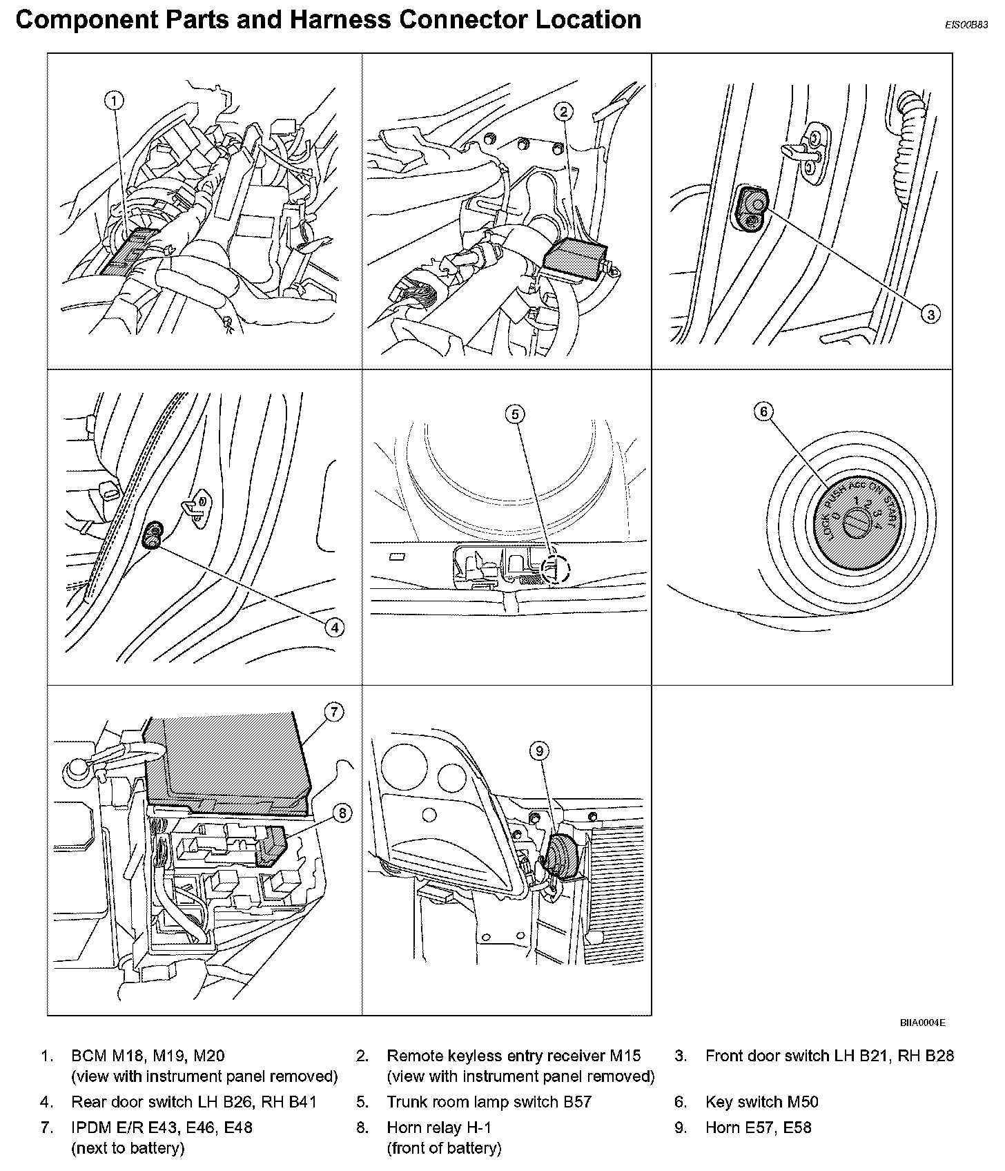 Component Parts And Harness Connector Location: