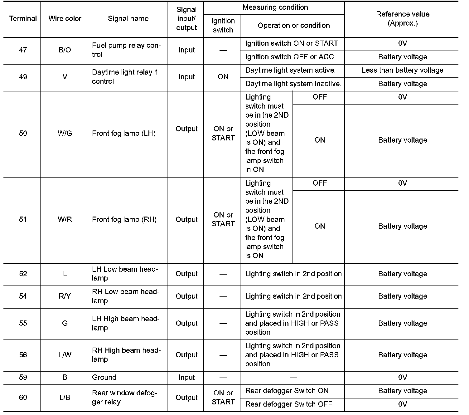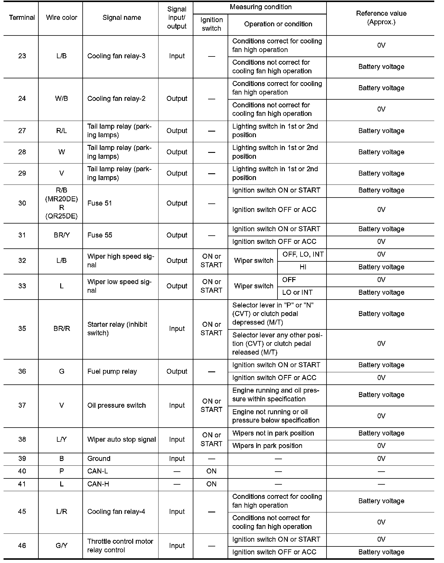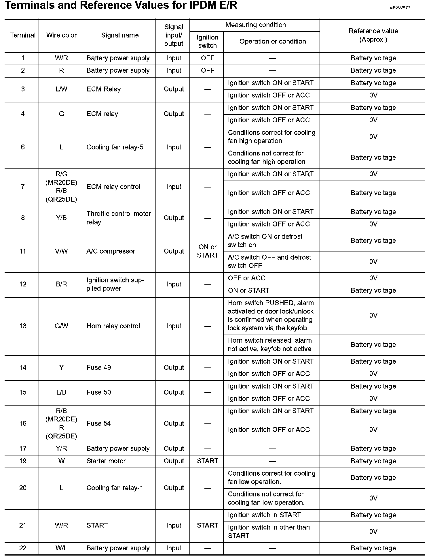 Terminals And Reference Values For IPDM E/R (Part 1):
