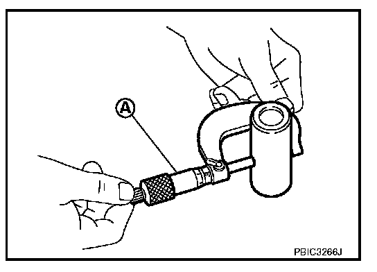 Measure the inner diameter of piston pin hole with an inside micrometer (A).