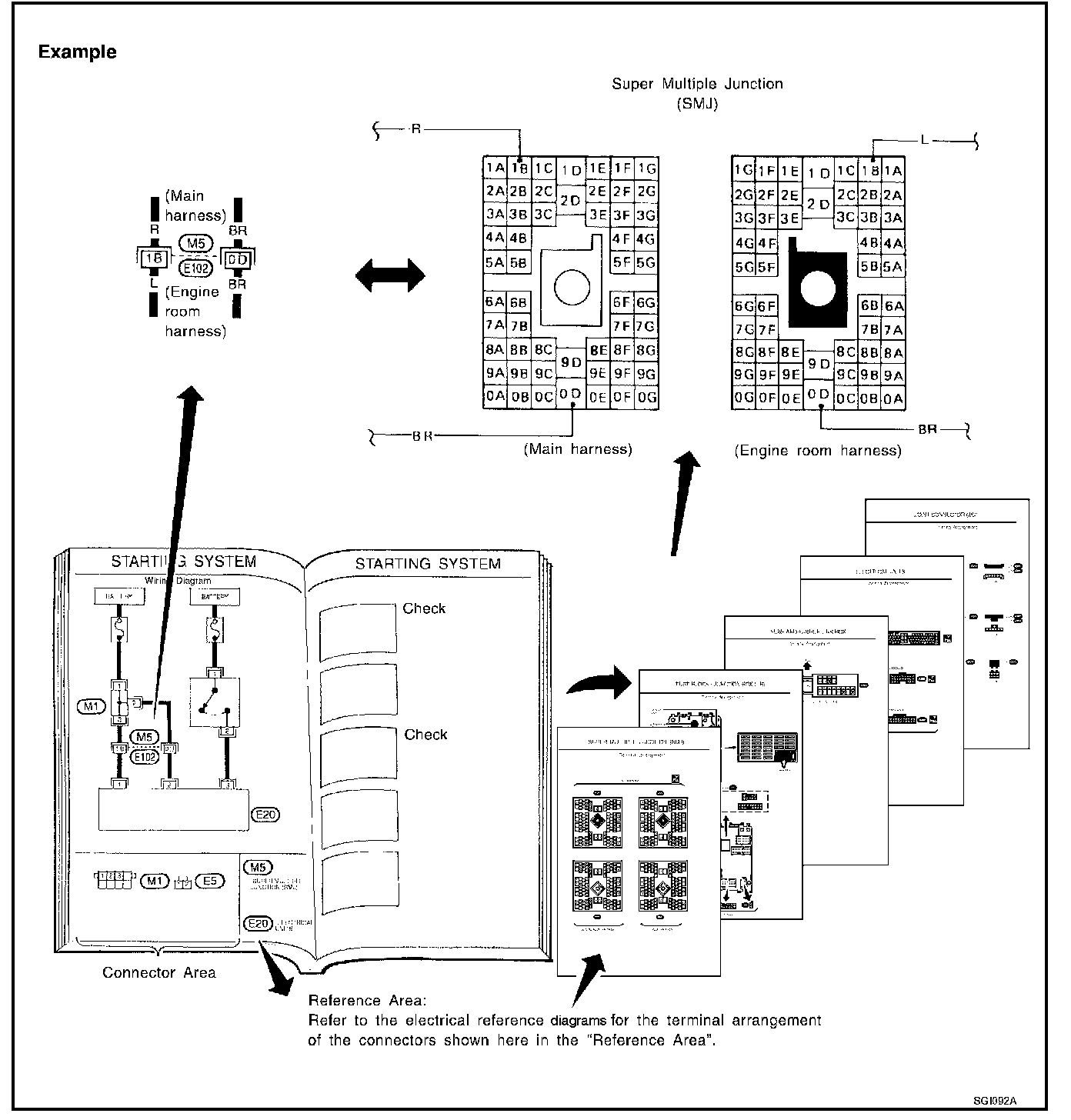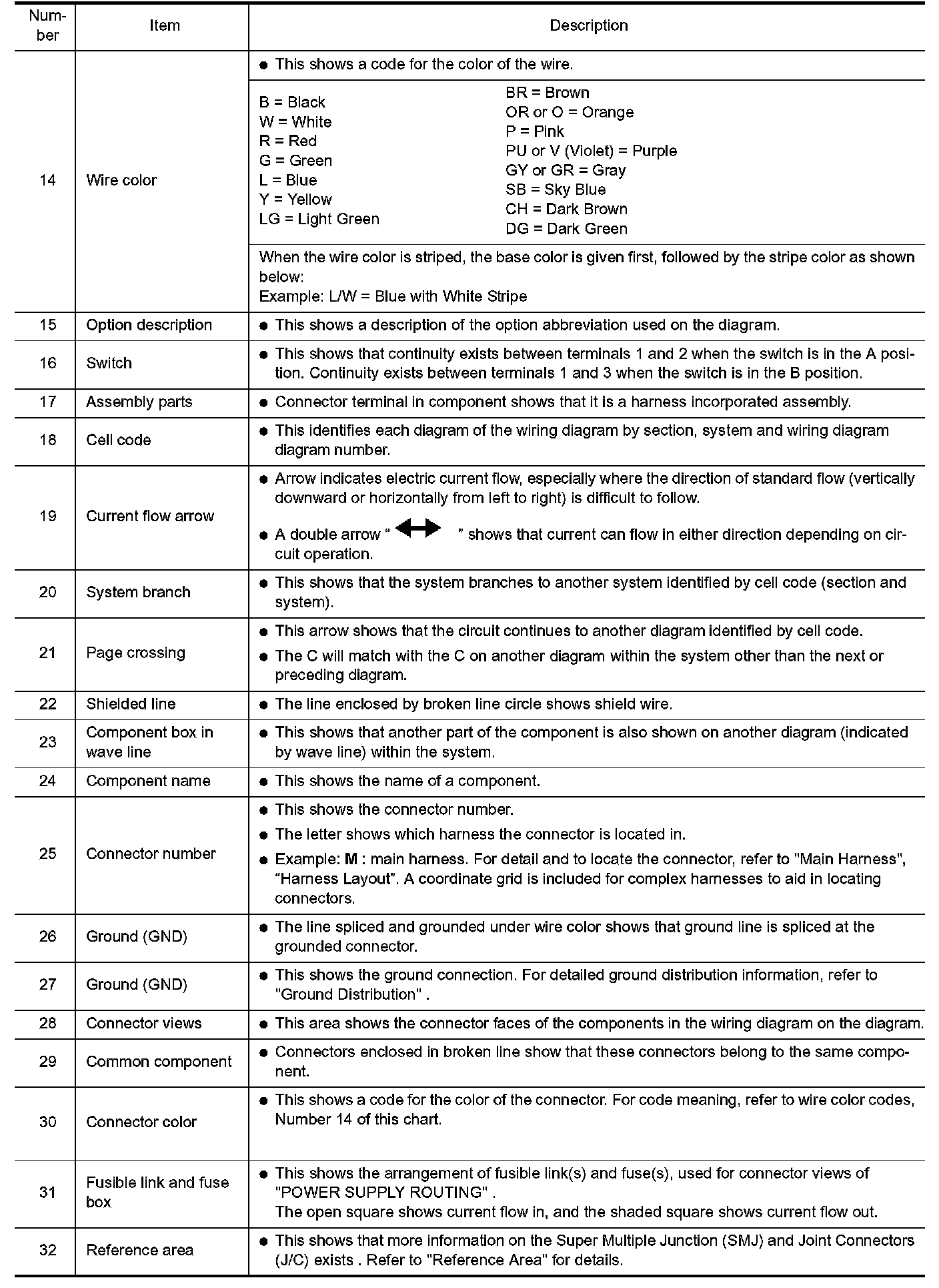 The Reference Area of the wiring diagram contains references to additional electrical reference diagrams. If connector numbers and titles are shown in the Reference Area of the wiring diagram, these connector symbols are not shown in the Connector Area.
