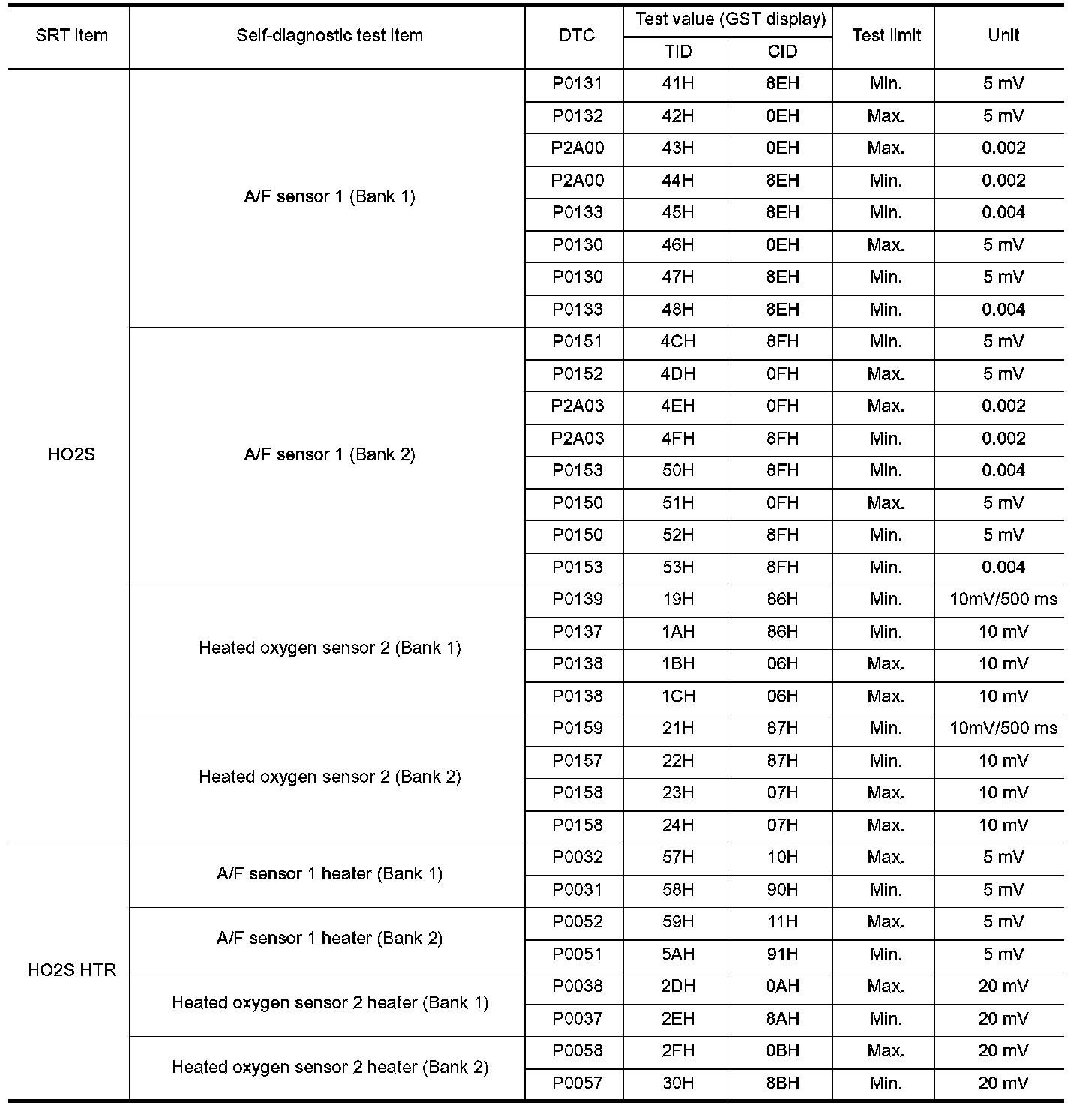 The test value is a parameter used to determine whether a system/circuit diagnostic test is OK or NG while being monitored by the ECM during self-diagnosis. The test limit is a reference value which is specified as the maximum or minimum value and is compared with the test value being monitored.