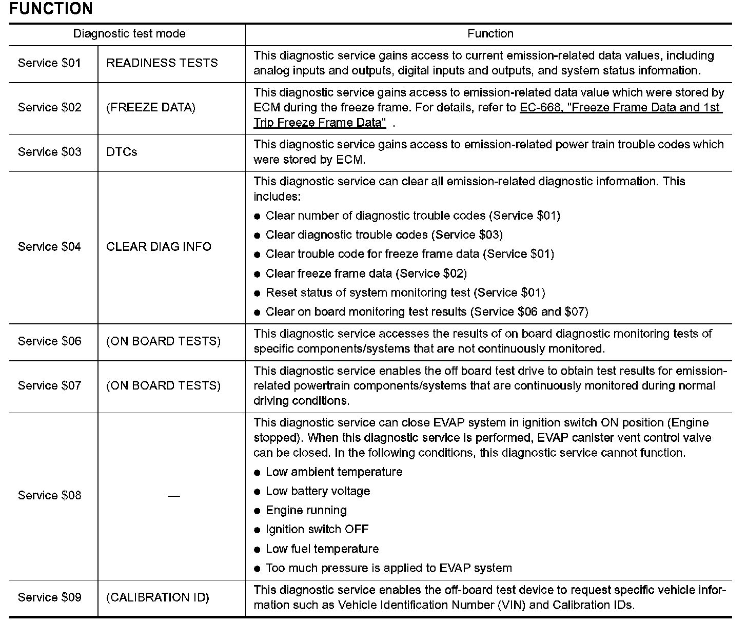 Generic Scan Tool (OBD-II scan tool) complying with SAE J1978 has 8 different functions explained.