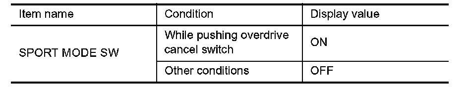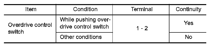 6. CHECK OVERDRIVE CONTROL SWITCH CIRCUIT WITHOUT INTELLIGENT KEY