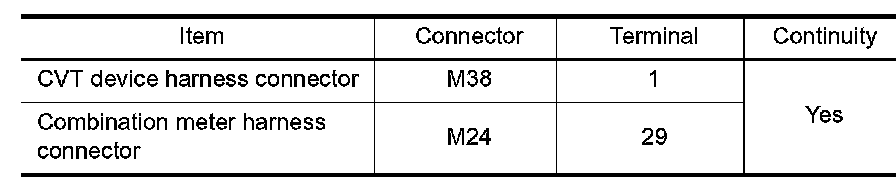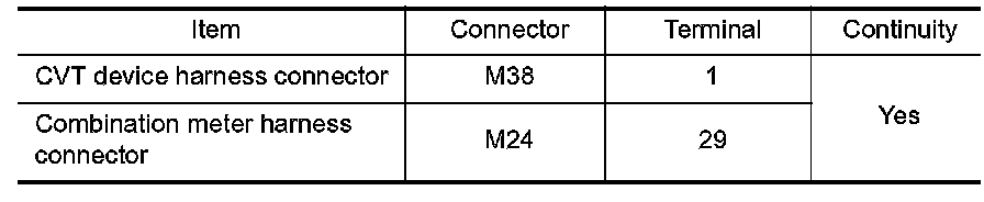 Check continuity between CVT device harness connector terminals.