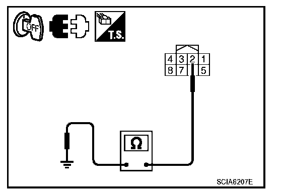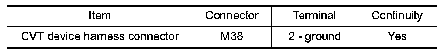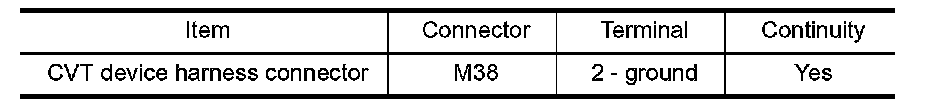 4. Check continuity between CVT device harness connector terminal and ground.