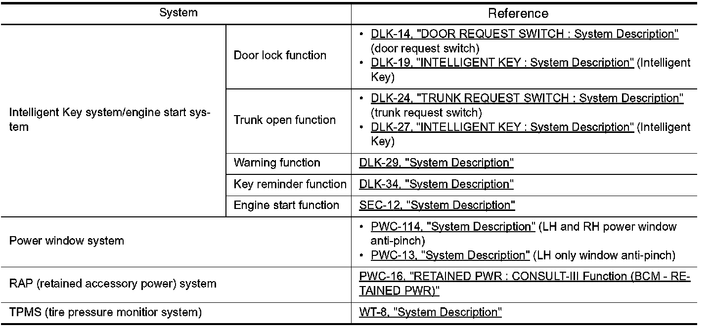 - BCM is equipped with the diagnosis function that performs the diagnosis with CONSULT-III and various settings.