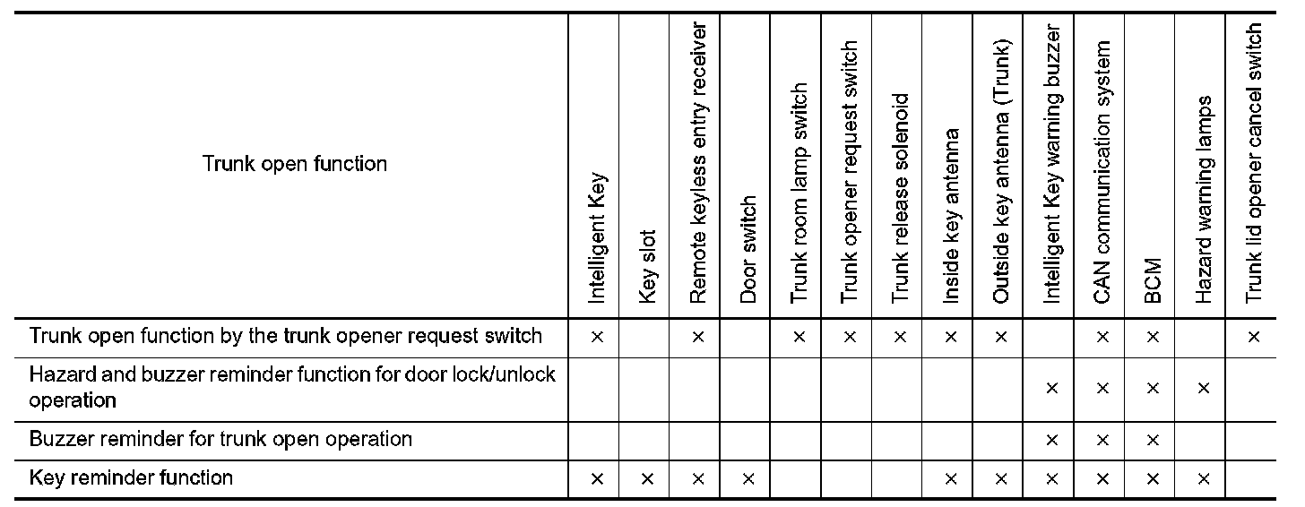 - The Intelligent Key system is a system that makes it possible to open the trunk (trunk open function) by carrying the Intelligent Key which operates based on the results of electronic ID verification using two-way communications between the Intelligent Key and the vehicle (BCM).
