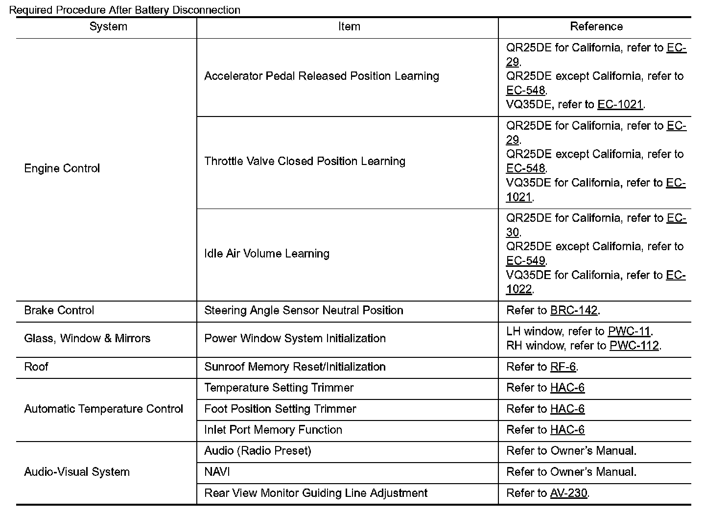 ADDITIONAL SERVICE WHEN REMOVING BATTERY NEGATIVE TERMINAL: Special Repair Requirement