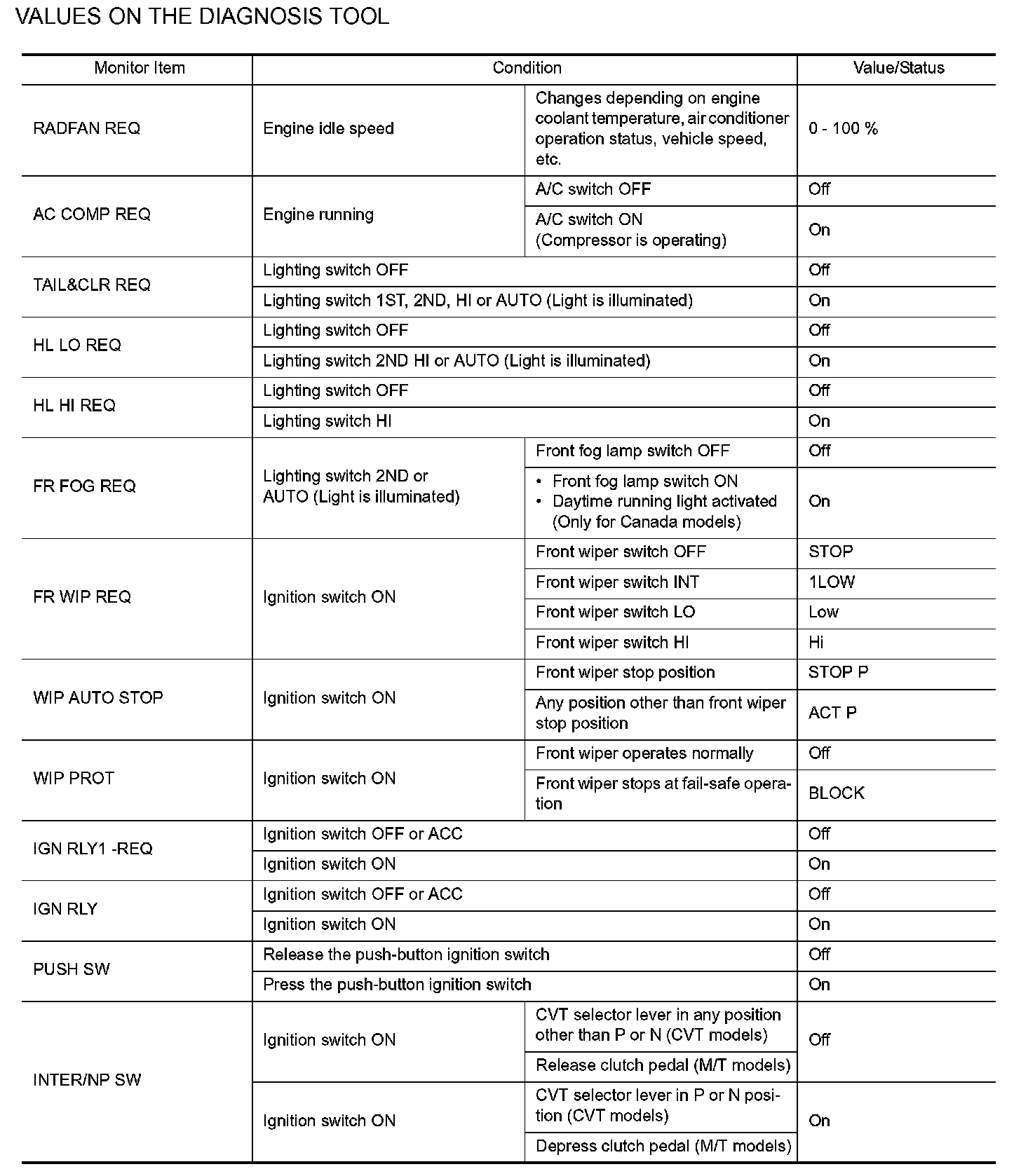 VALUES ON THE DIAGNOSIS TOOL