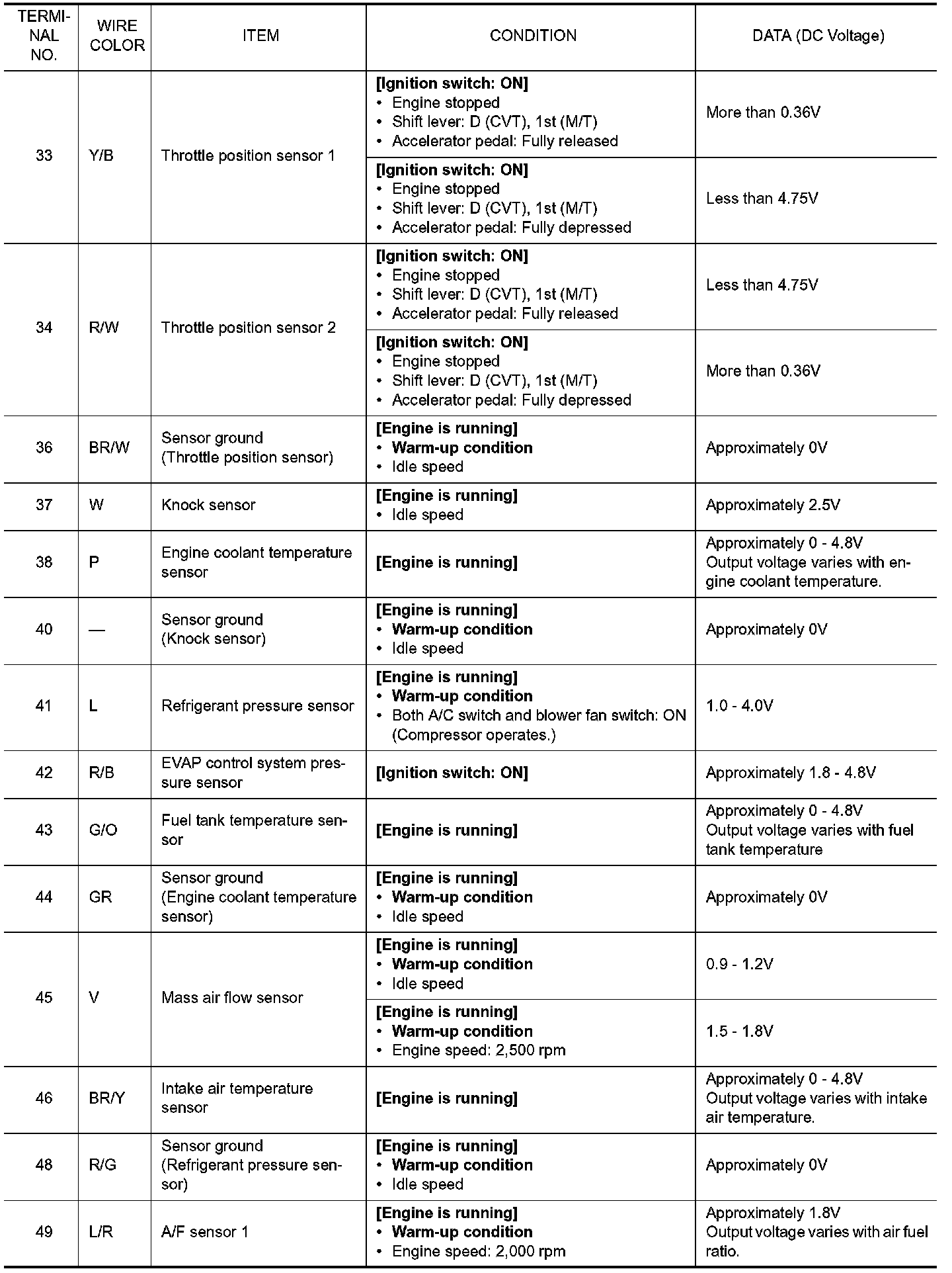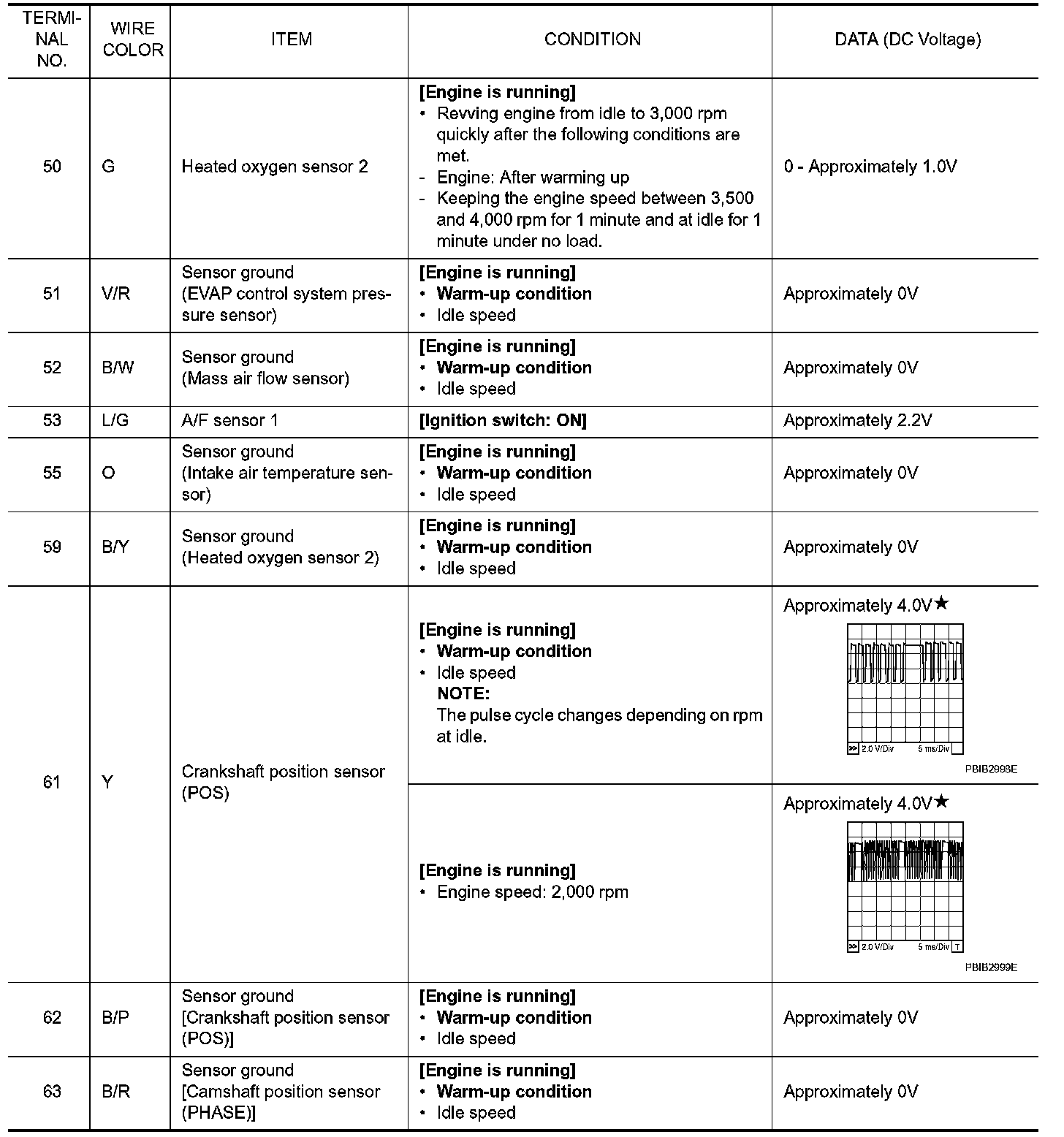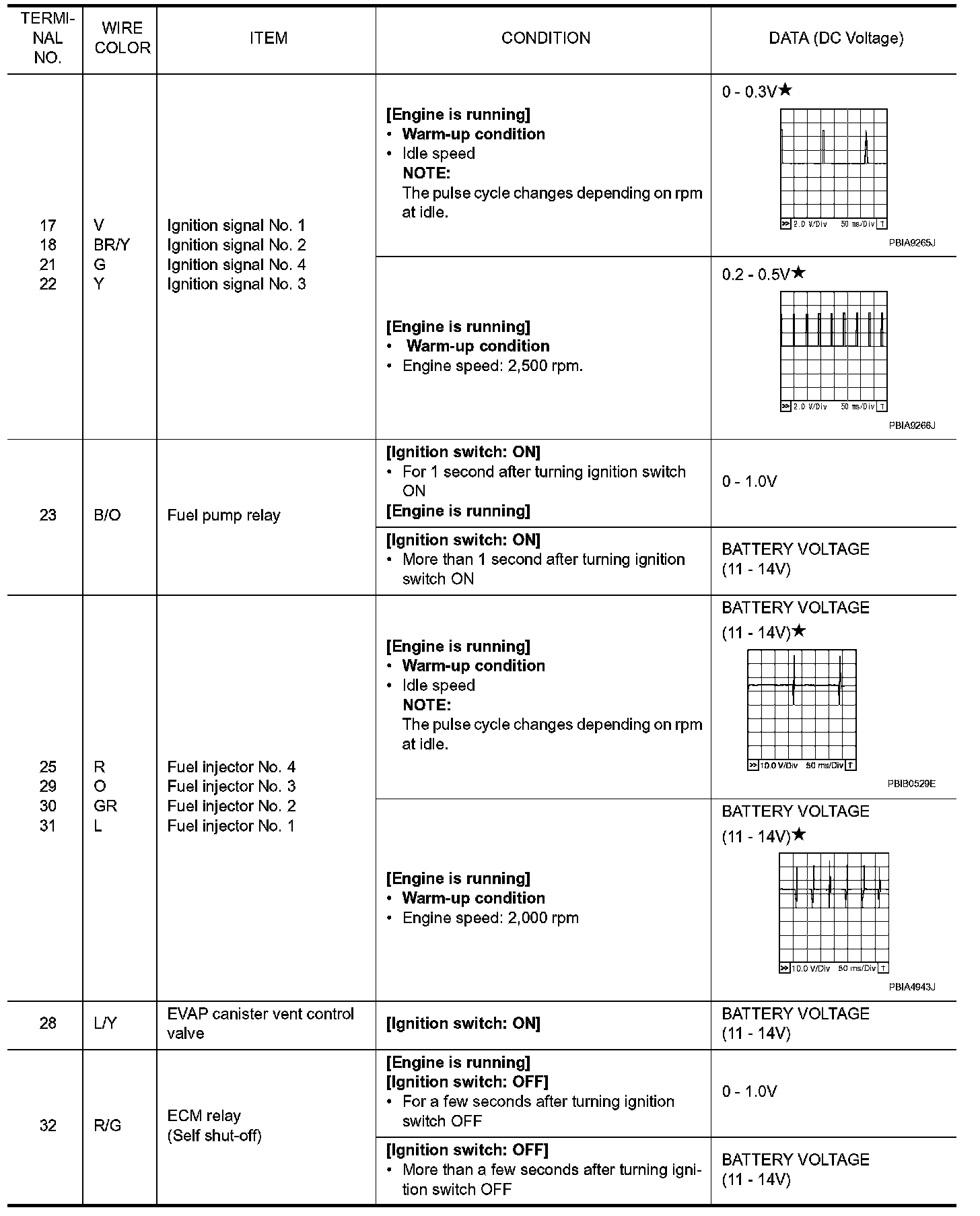 Specification data are reference values and are measured between each terminal and ground. Pulse signal is measured by CONSULT-III.