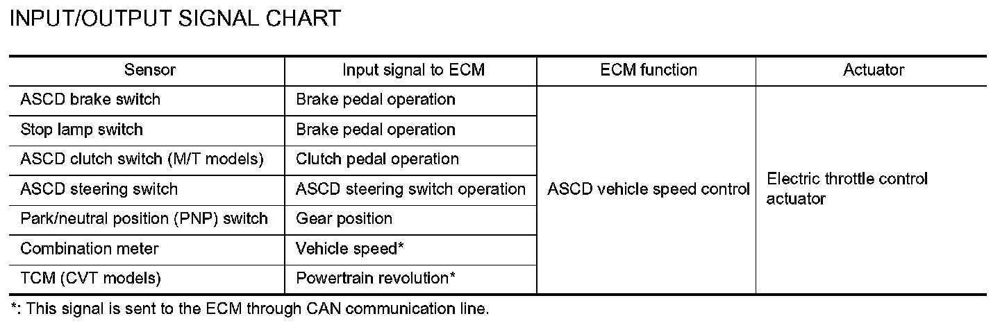 When the ECM detects any of the following conditions, the ECM will cancel the cruise operation and inform the driver by blinking indicator lamp.