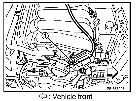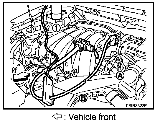 2. Connect No. 4 ignition coil (1) and No. 4 spark plug with suitable high-tension wire (A) as shown, and attach timing light clamp (B) to this wire.