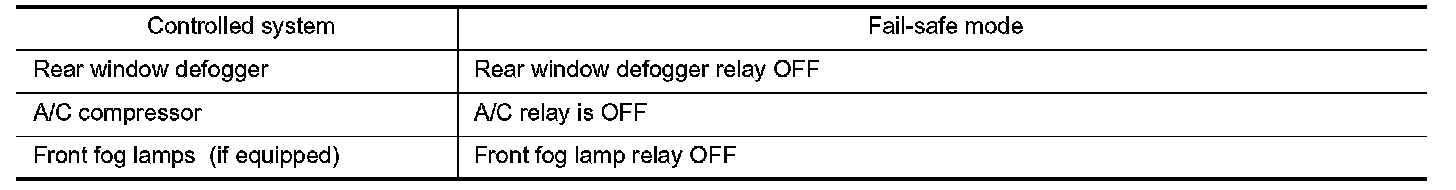 - Operation of control parts by IPDM E/R during fail-safe mode is as follows: