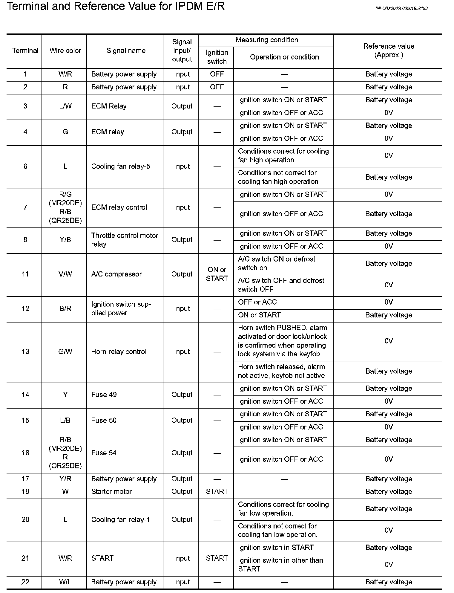 Terminal And Reference Value For IPDM E/R (Part 1):