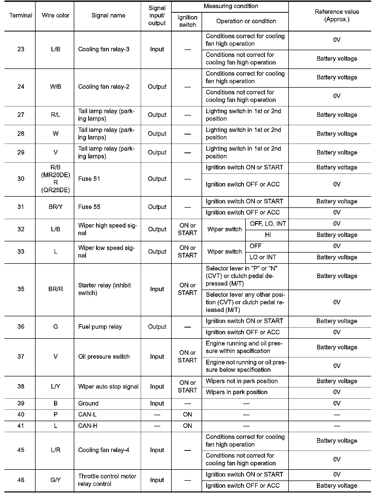Terminal And Reference Value For IPDM E/R (Part 2):