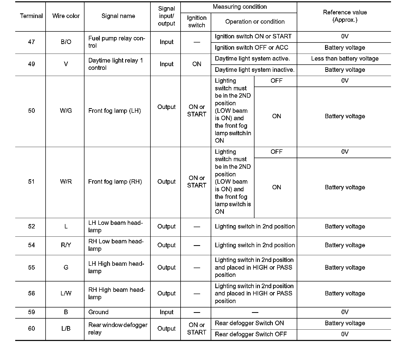 Terminal And Reference Value For IPDM E/R (Part 3):