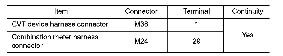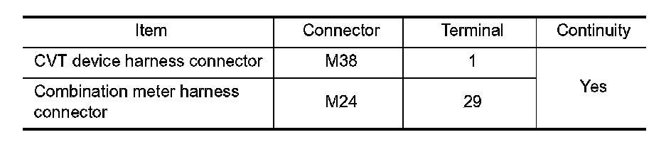 Check continuity between CVT device harness connector terminals.