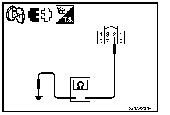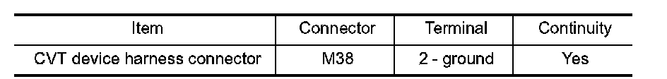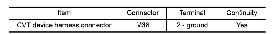 4. Check continuity between CVT device harness connector terminal and ground.