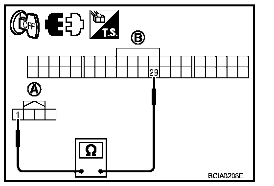 3. Check continuity between CVT device harness connector (A) terminal and combination meter harness connector (B) terminal.