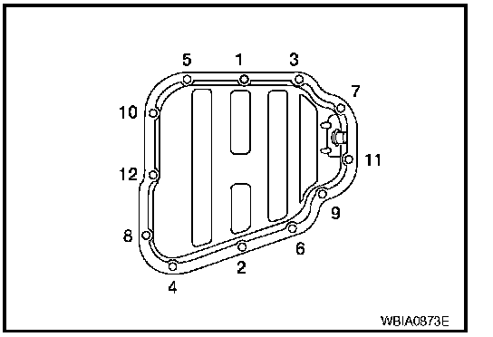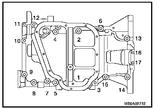 Tighten the lower oil pan bolts in the numerical order shown.