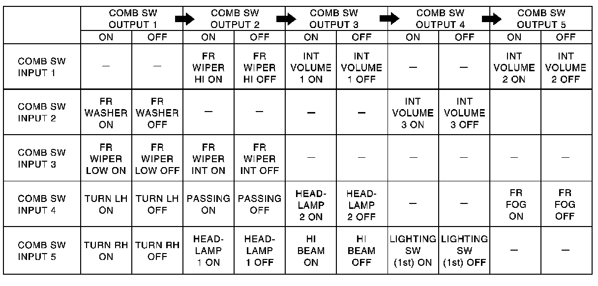 - BCM reads operation status of combination switch by the combination shown in the following table.